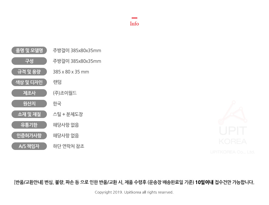 • 초기제품 이상의 경우 동일한 제품으로 1:1 교환원칙, 사용후 제품이상은 A/S를 원칙으로 합니다.