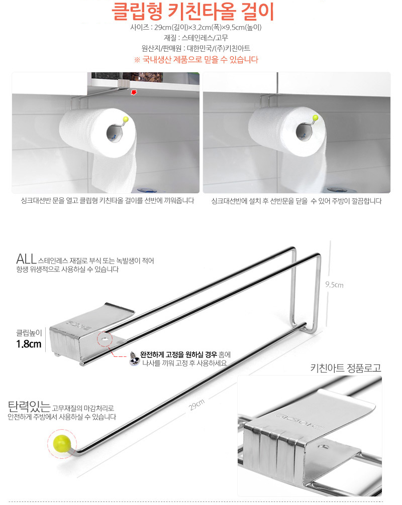 키친아트 선반 클립 주방 키친타올걸이 수납 보관대