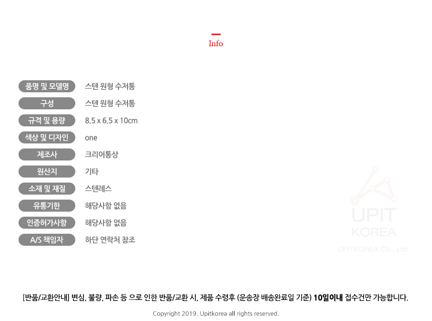 • 초기제품 이상의 경우 동일한 제품으로 1:1 교환원칙, 사용후 제품이상은 A/S를 원칙으로 합니다.