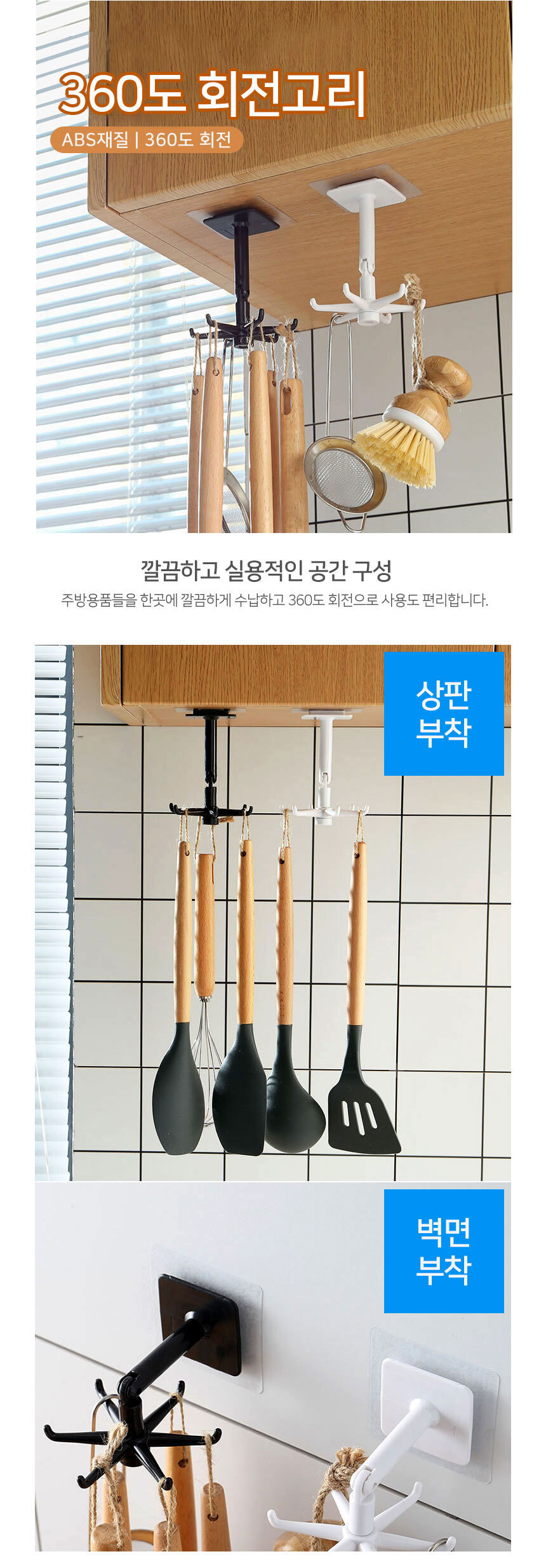 360도 회전 주방 조리기구 보관걸이/ 수납 정리/ 천장 벽면부착