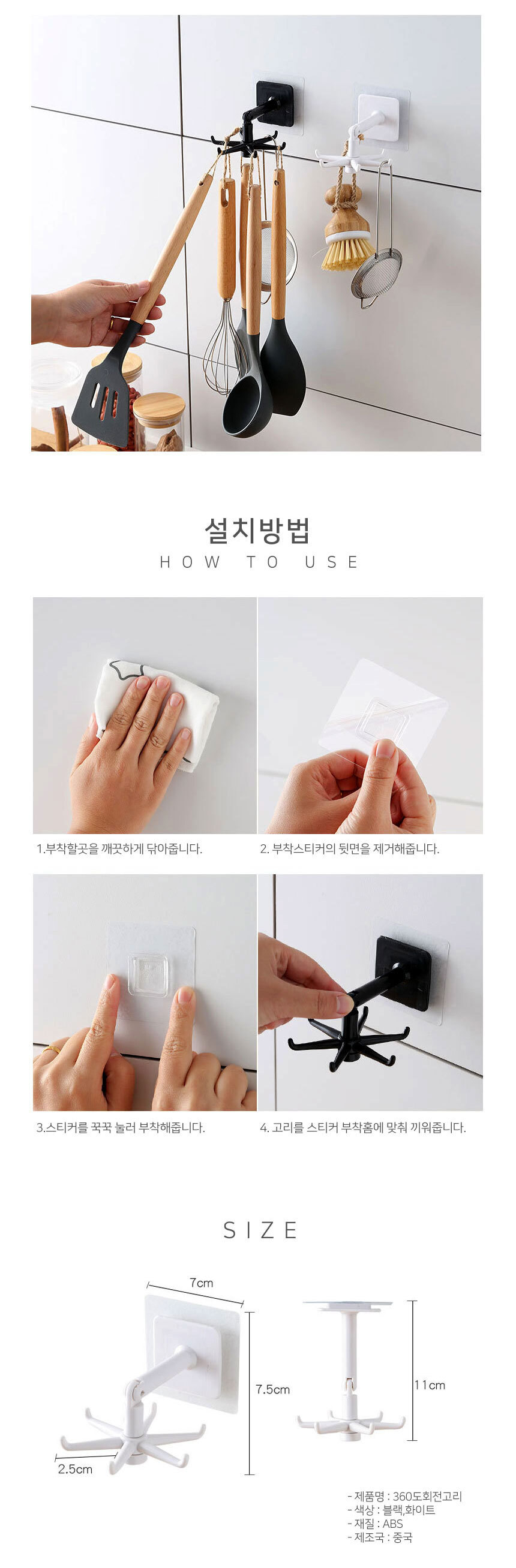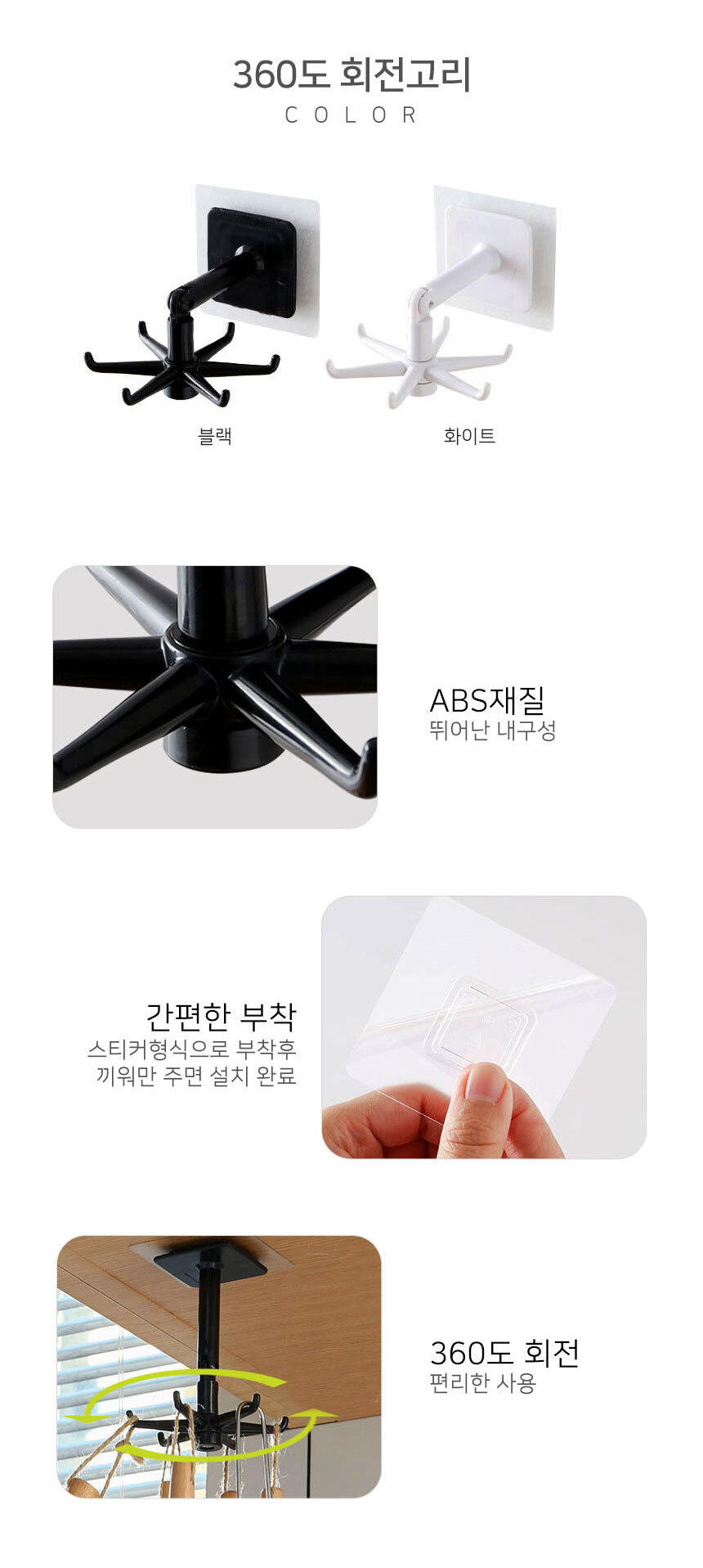 360도 회전 주방 조리기구 보관걸이/ 수납 정리/ 천장 벽면부착 이미지/