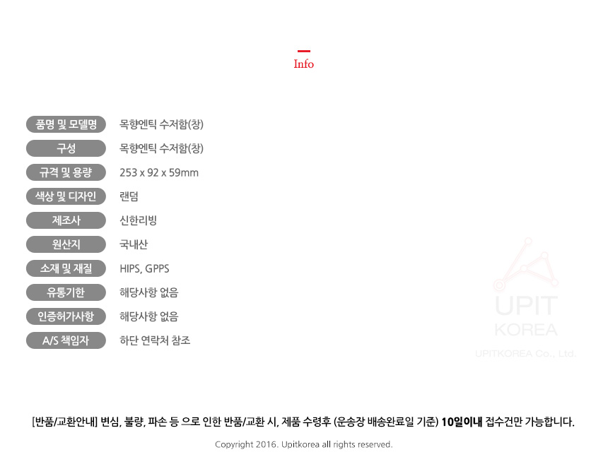 • 반품/환불조건: 도착후 1주일 이내 사용하지 않은 상태에서 가능합니다,초기제품 이상의 경우 동일한 제품으로 1:1 교환원칙, 사용후 제품이상은 A/S를 원칙으로 합니다,