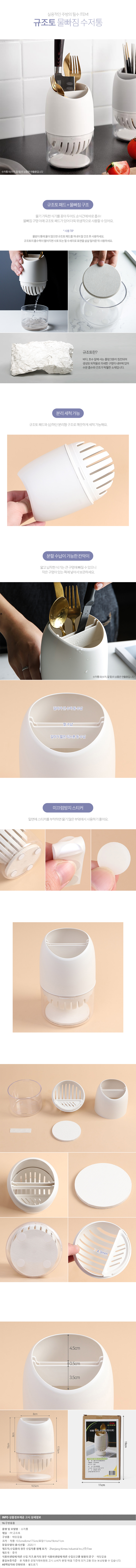 해피홈 주방 규조토 물빠짐 수저통 수저꽂이(화이트) 이미지/