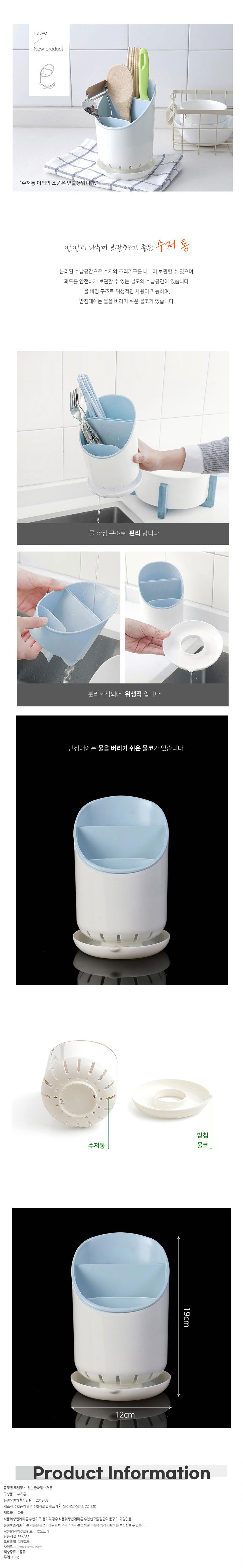 물빠짐 칸칸이 수저통 블루 수저정리통 테이블수저통 이미지/