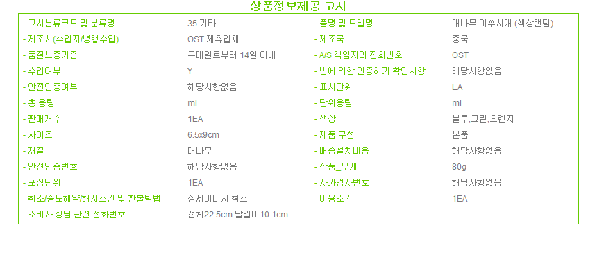 A/S책임자와 전화번호 또는 소비자 상담 관련 전화번호 상품상세설명에 표기