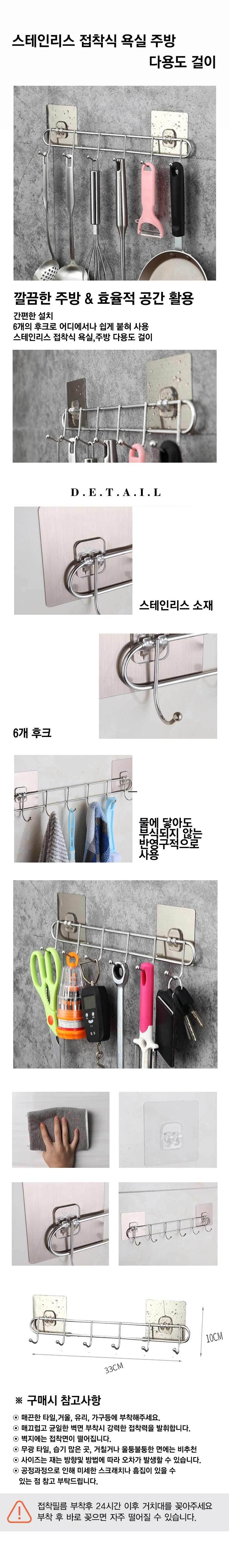 스테인레스 부착식 조리도구 걸이 주방도구 걸이 6P