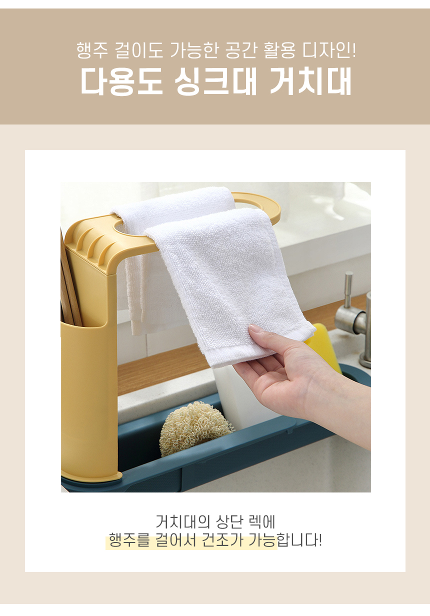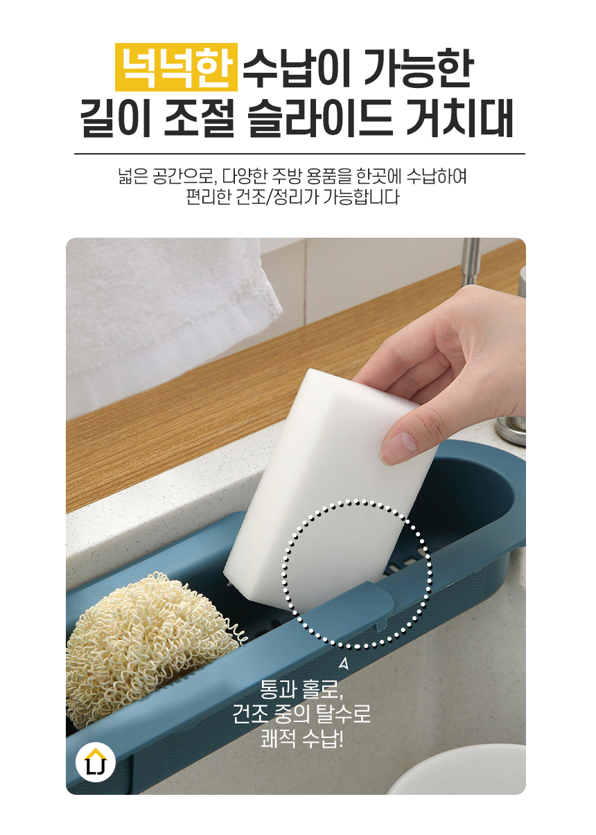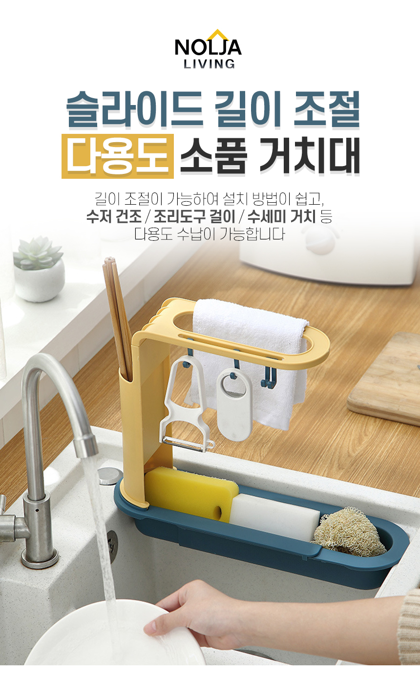 길이조절 고급형 슬라이드 수세미 행주 다용도 거치대 주방용품 정리 행주걸이
