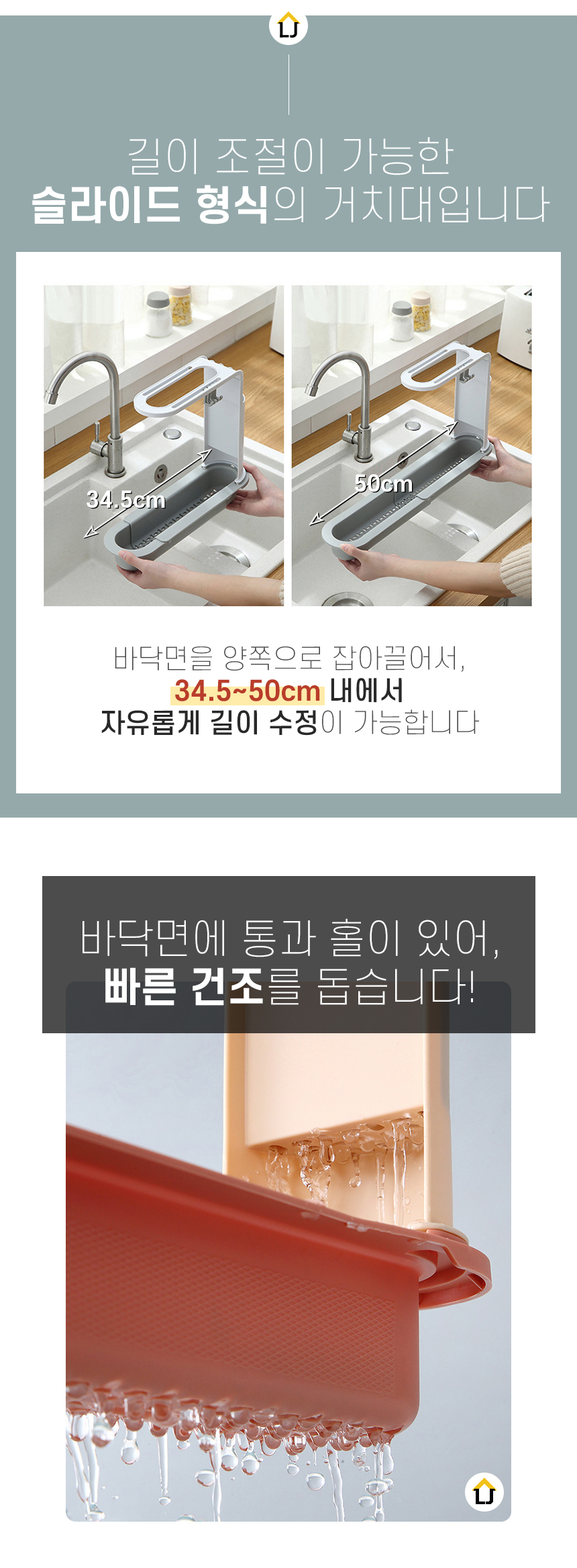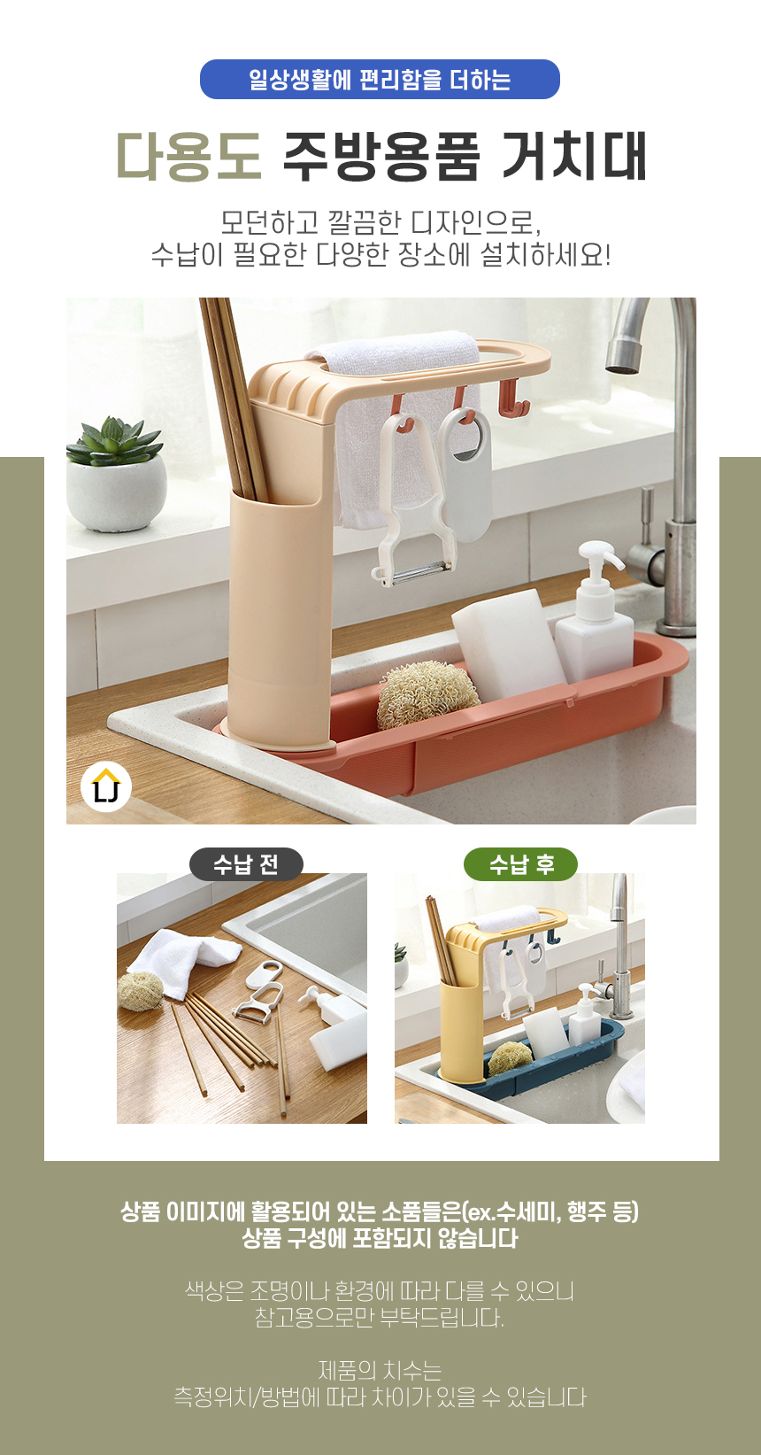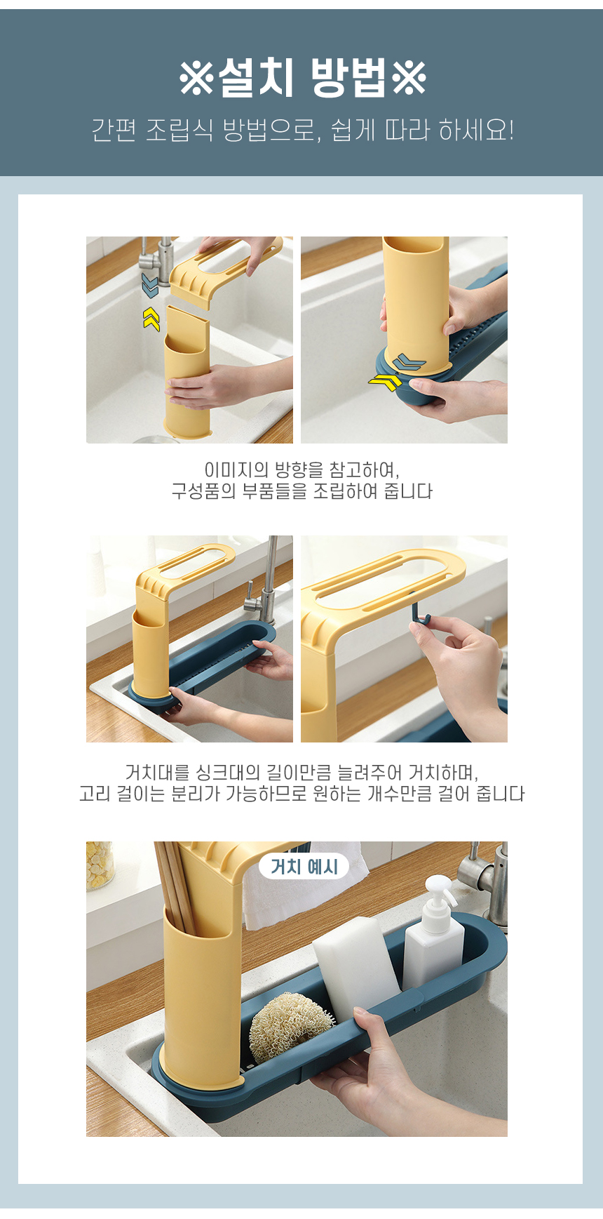 길이조절 고급형 슬라이드 수세미 행주 다용도 거치대 주방용품 정리 행주걸이