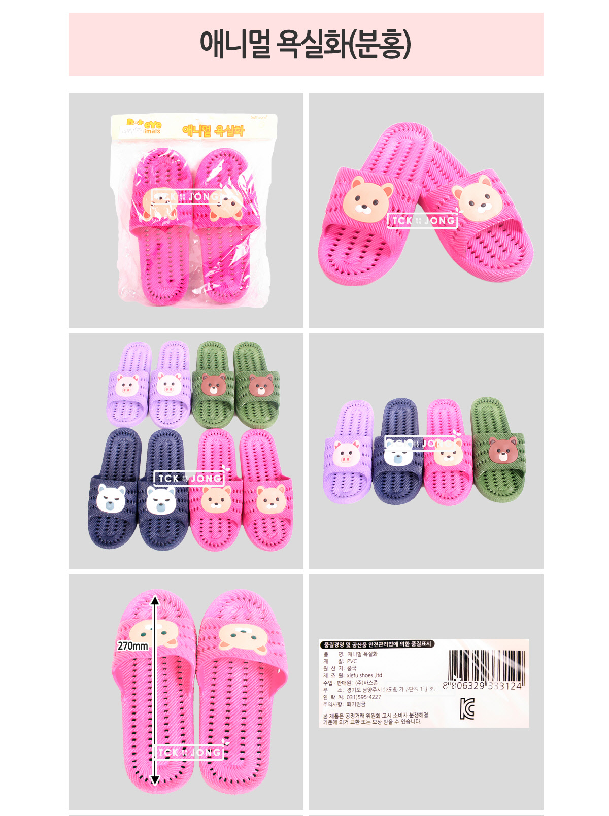 애니멀 욕실화(분홍)270mm 이미지/