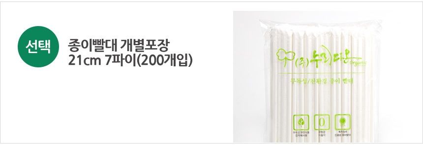 국내생산 친환경 우뭇가사리 미역추출물사용 종이빨대 개별포장 200개 이미지/