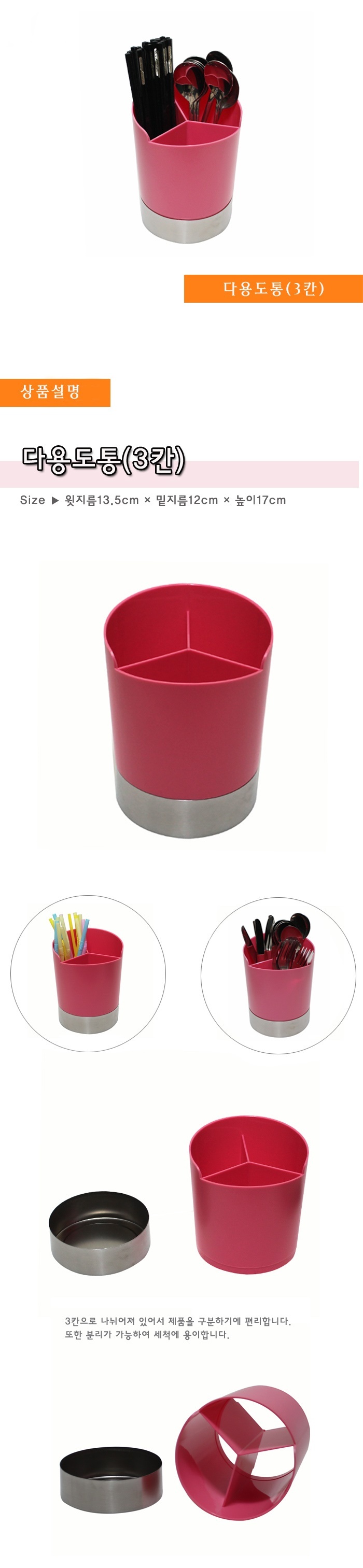 다용도통 3칸 수저분류통 빨대용디스펜서 마브로 이미지/