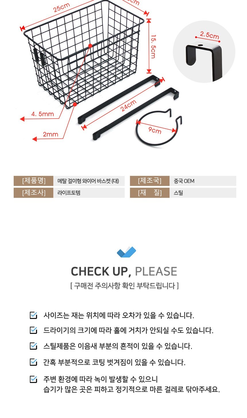 라이프토템 메탈 걸이형 철제 바구니 대형