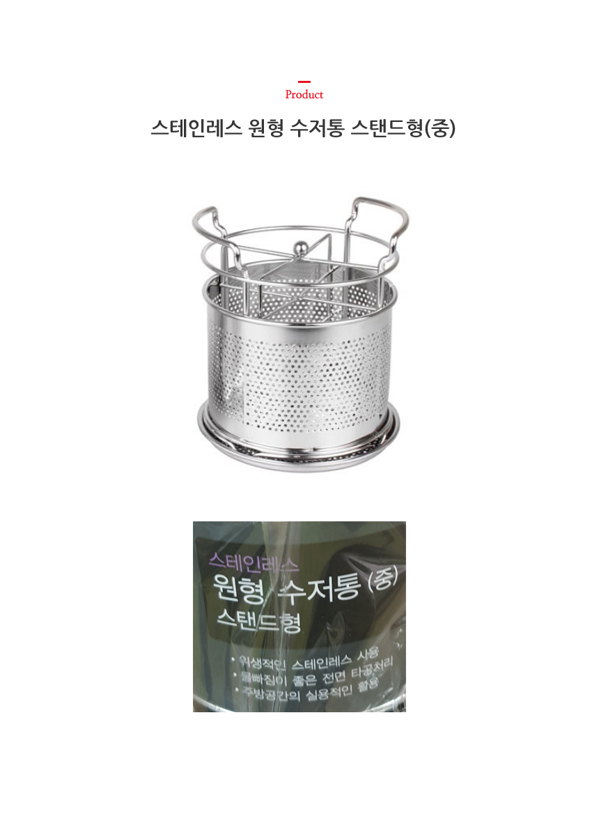 스테인레스 원형 수저통 스탠드형(중) 이미지/