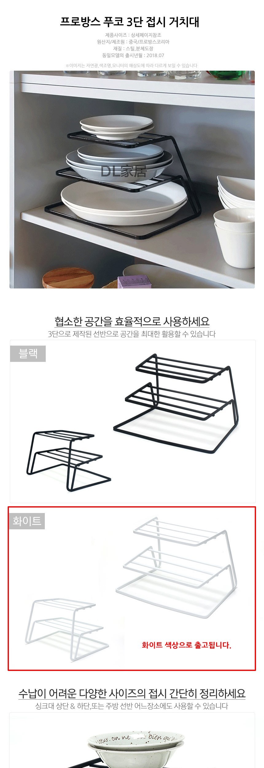 프로방스 푸코 철재 3단 접시거치대 화이트 이미지/
