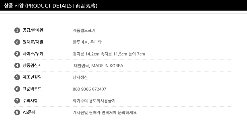 4. 크기 : 상세정보 별도표기