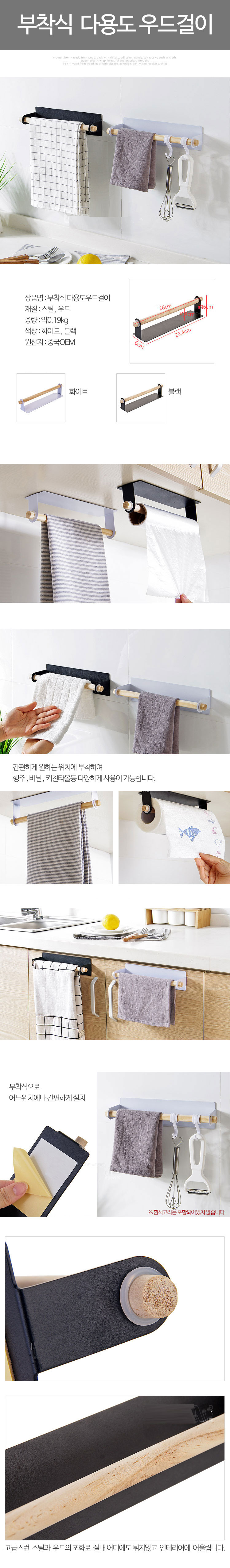 [도매직방] 주방 욕실 부착식 다용도 우드 걸이 행거