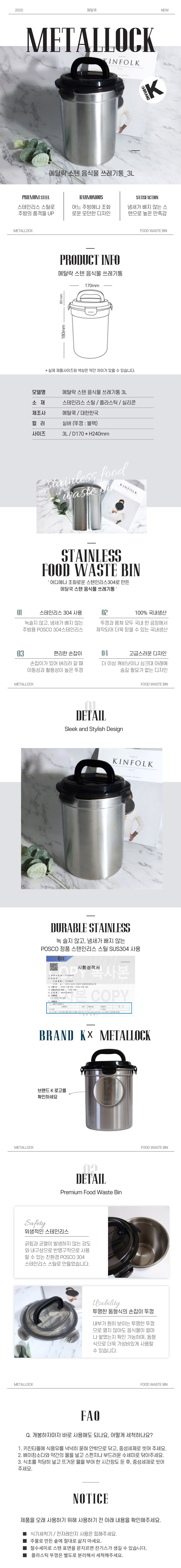 메탈락 스테인리스 음식물 쓰레기통 3L