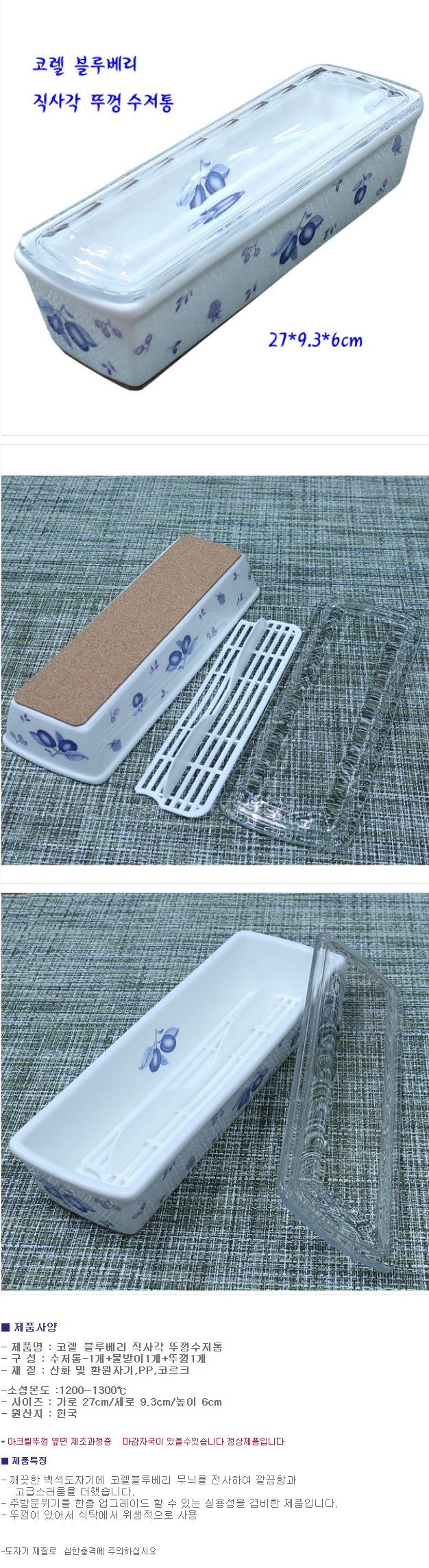 코렐 수저통 직사각 젓가락 수저함 숟가락통 보관함 이미지/