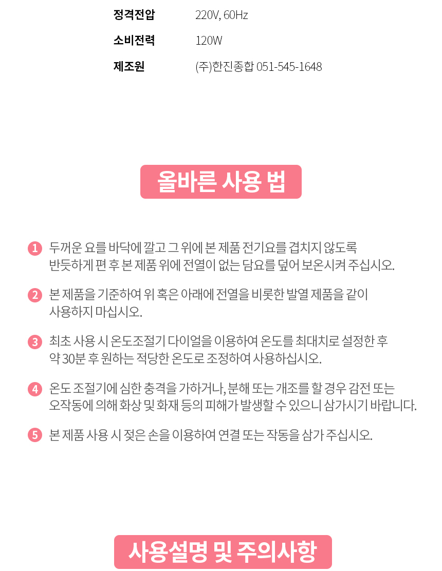 품명 양면 전기장판(중/대)
