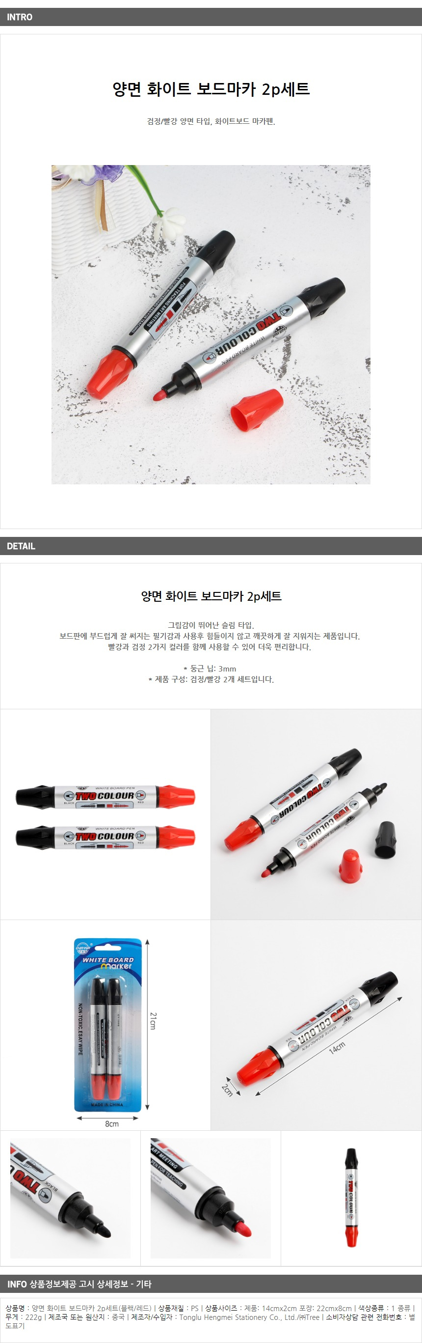 양면 화이트 보드마카 2p세트(검정/빨강)/매직 필기구 이미지/