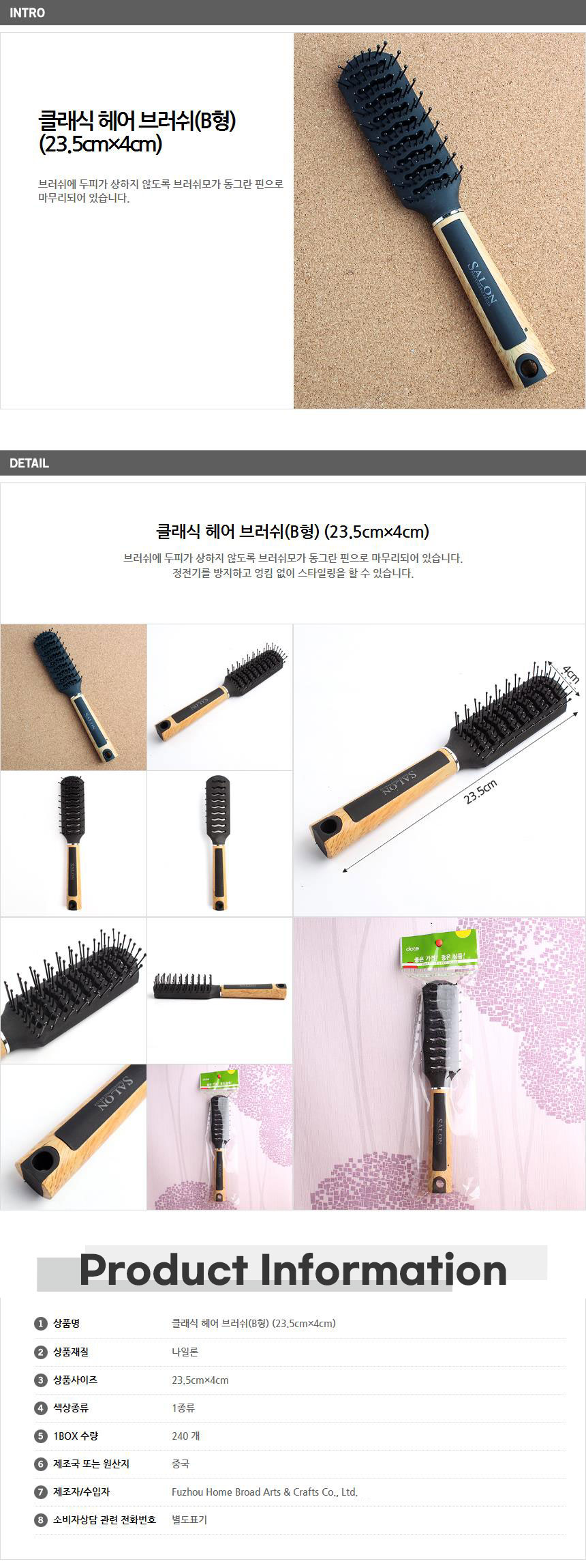 동그란핀 클래식 헤어브러쉬 B형 남성빗 가발빗 이미지/