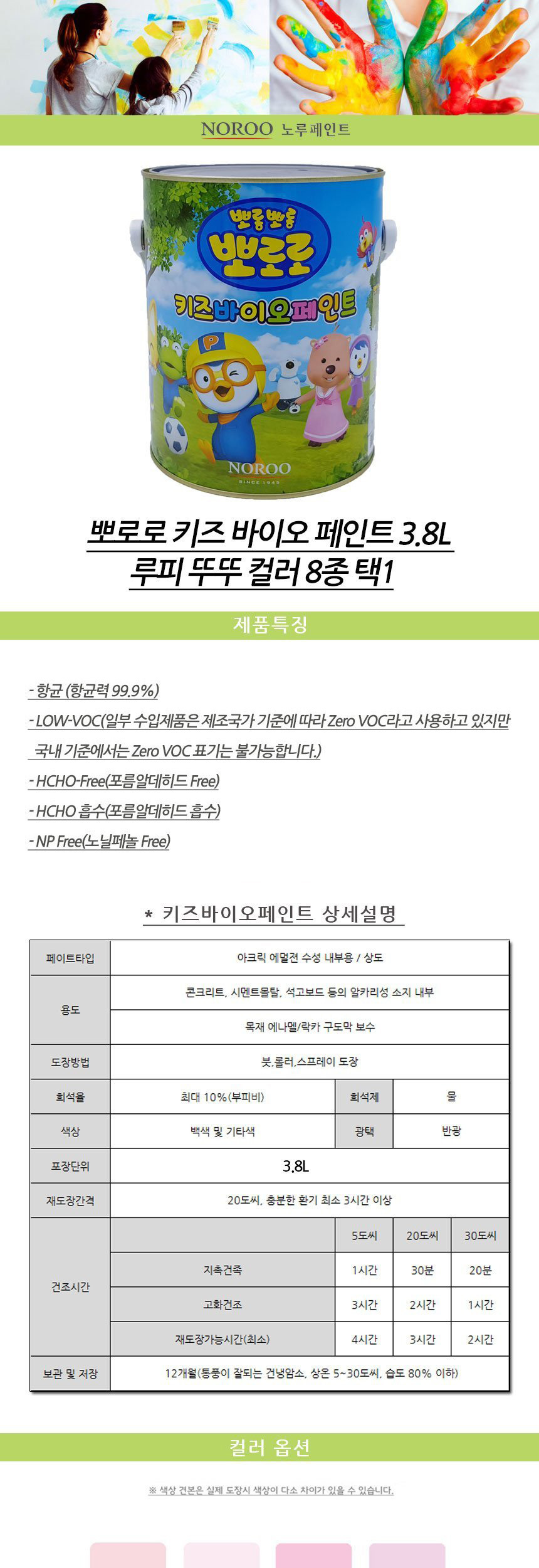 뽀로로 키즈 바이오페인트 3.8리터 루피 뚜뚜 8종 이미지/