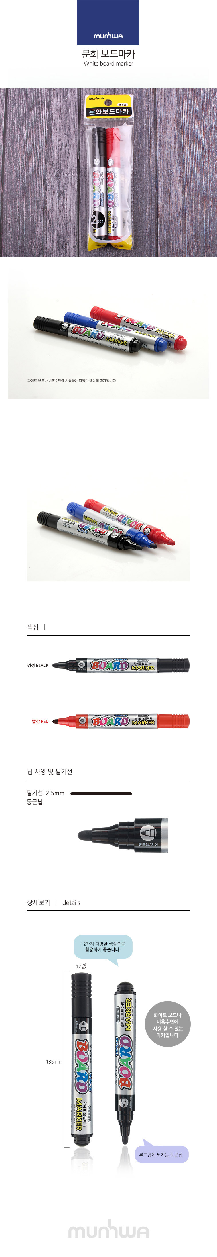 문화 보드마카 2개입(검정 빨강) 이미지/