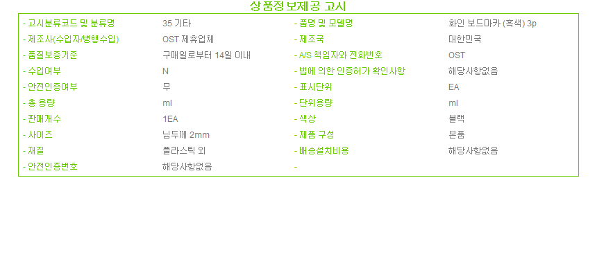 화인 보드마카 흑색 3p 칠판마카 학용품 문구