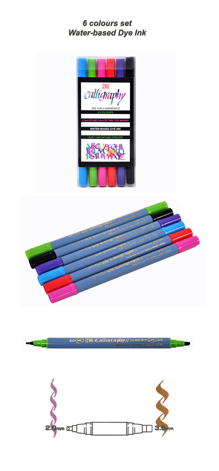지그 칼리그라피II세트 ZIG-TC-3100 6V 6색 910667 - 마카 보드마카펜 마 이미지/