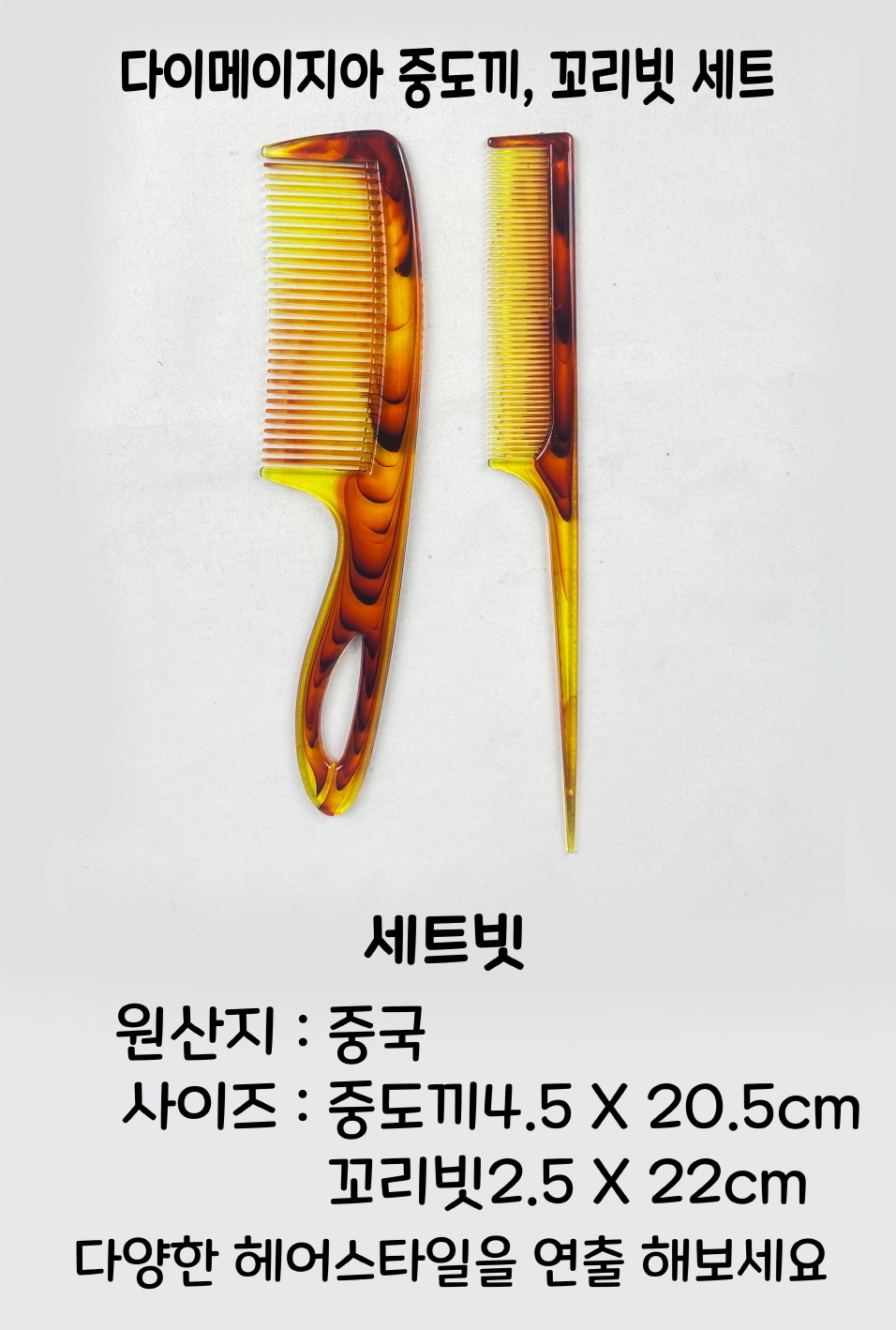 고급 아크릴 중도끼 빗 + 꼬리빗 세트 - D 이미지/
