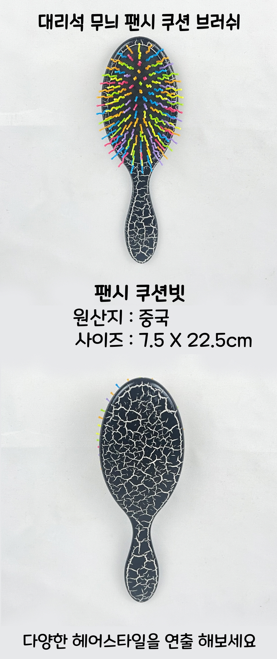 대리석무늬 팬시 최고급 쿠션 헤어 브러쉬 - D 이미지/