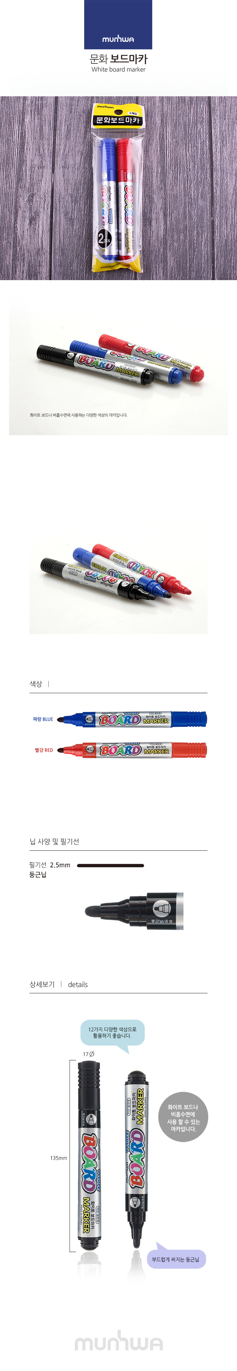 문화 보드마카 청적 2본 044ㅣ칠판 보드 마카 필기구 이미지/