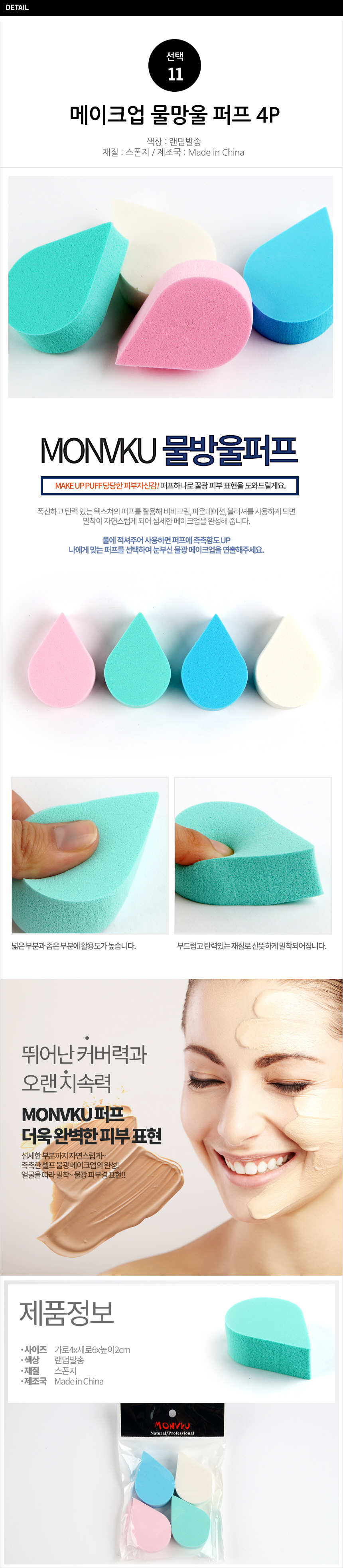 [MJ무역] 창고정리 메이크업 물방울 퍼프4P 이미지/