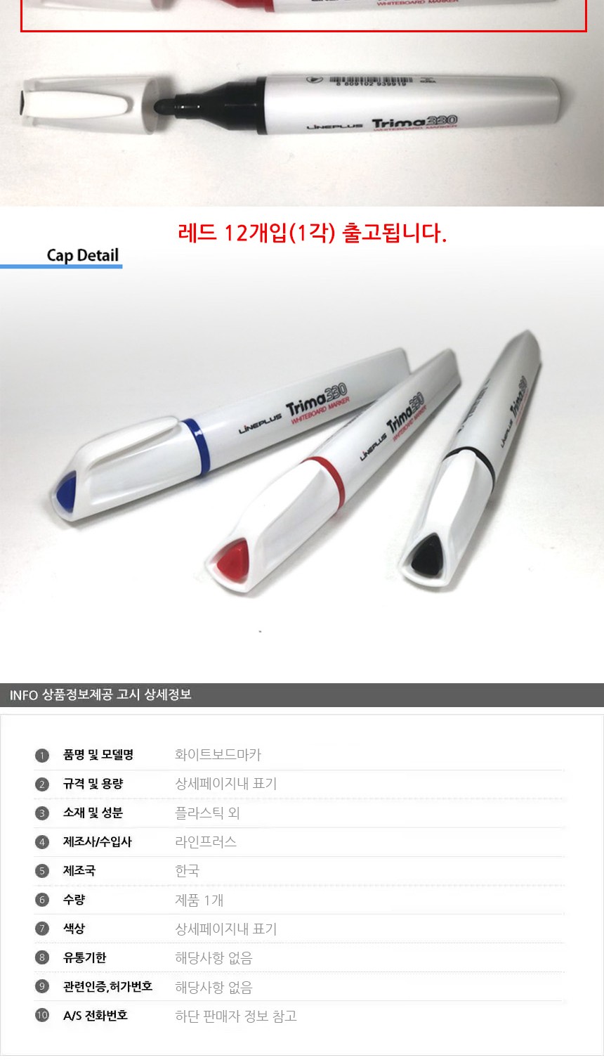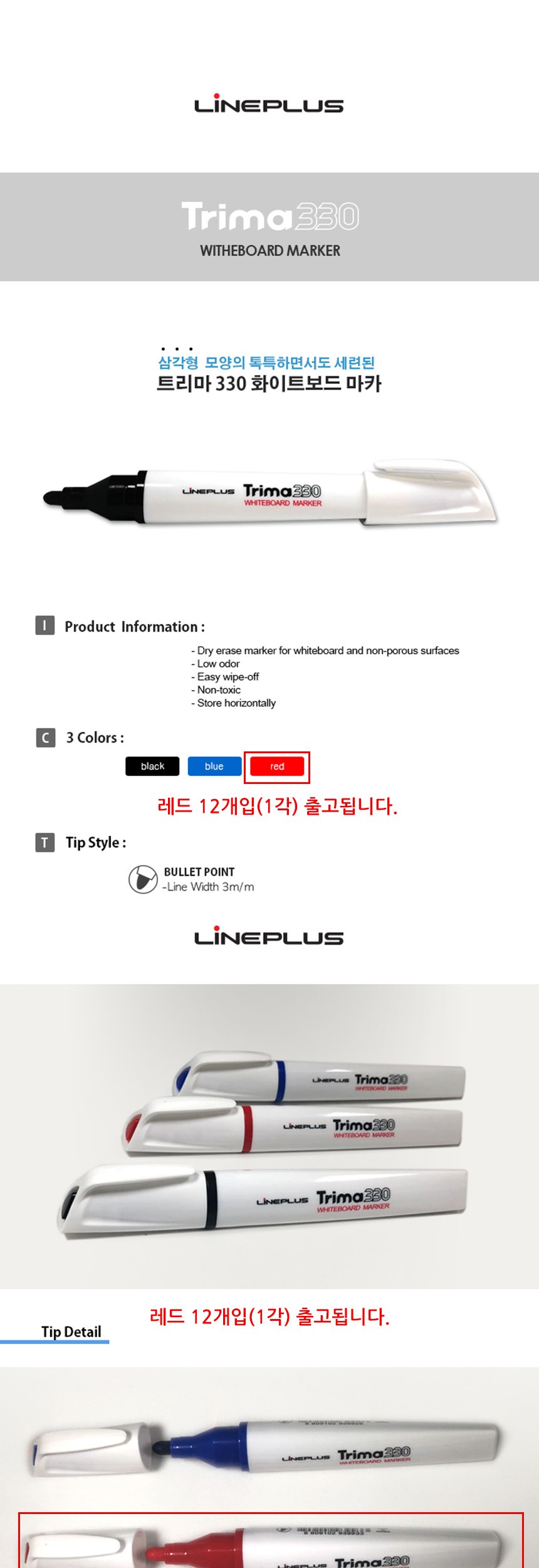 라인프러스 트리마330 화이트보드마카 적색 12개입 이미지/