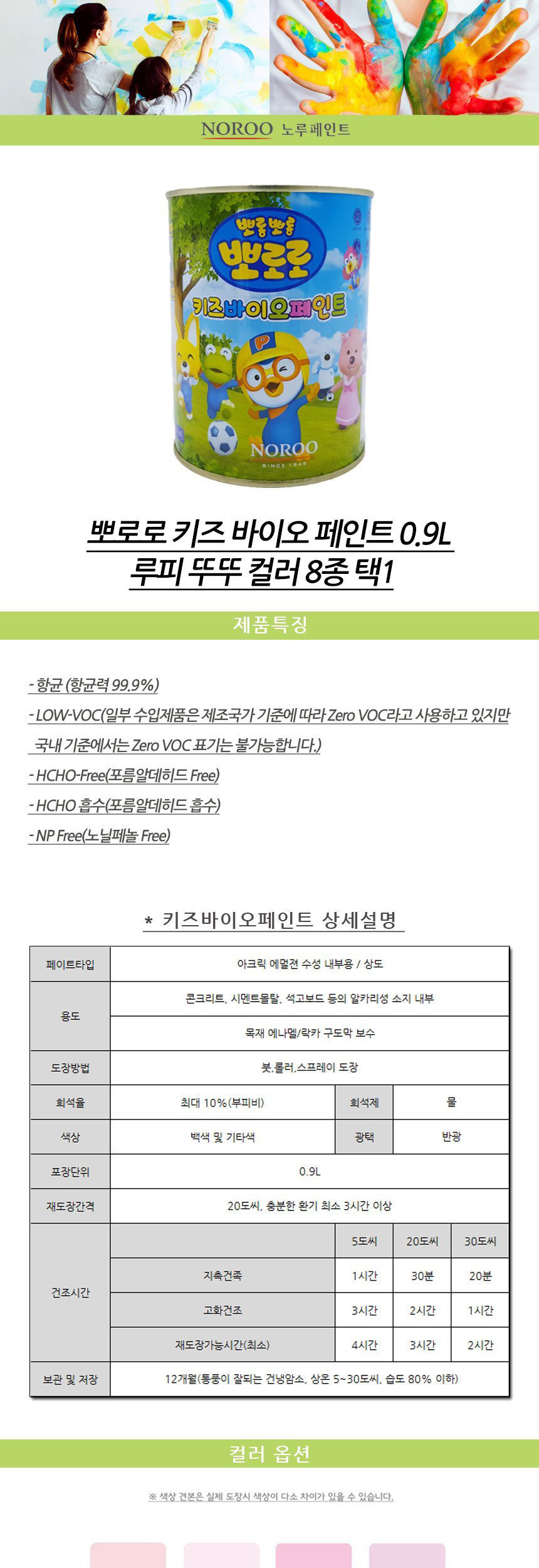 뽀로로 키즈 바이오페인트 0.9리터 루피 뚜뚜 8종 이미지/