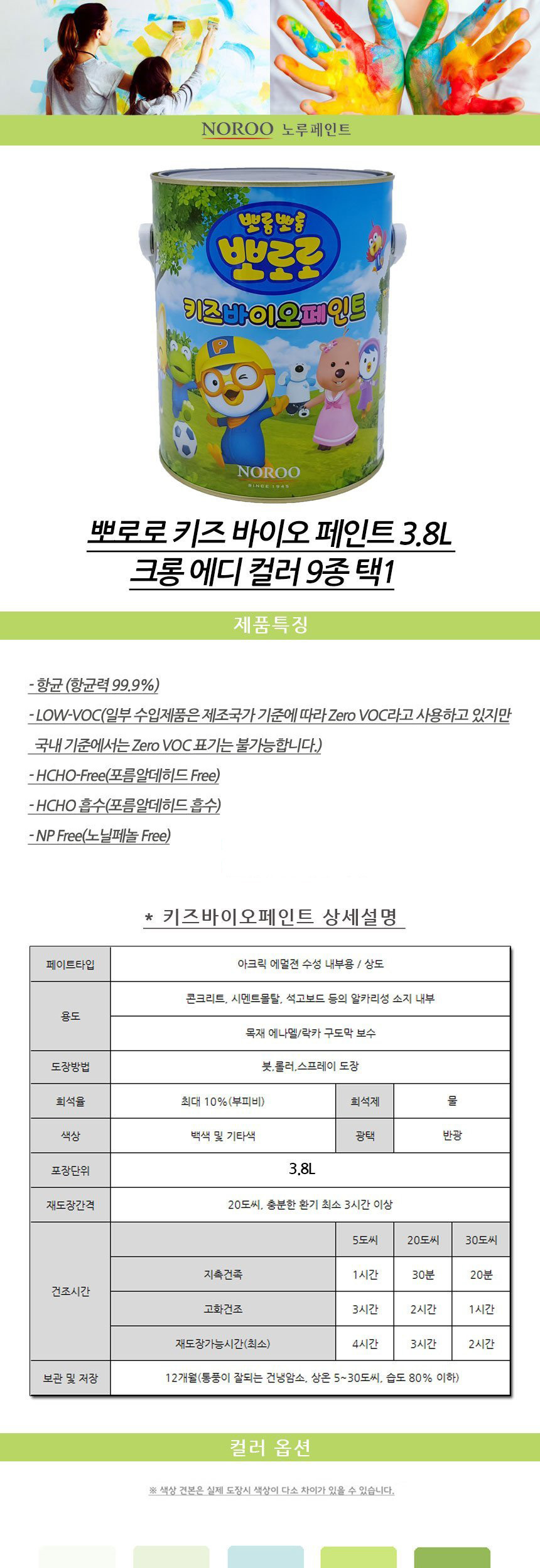 뽀로로 키즈 바이오페인트 3.8리터 크롱 에디 9종 이미지/