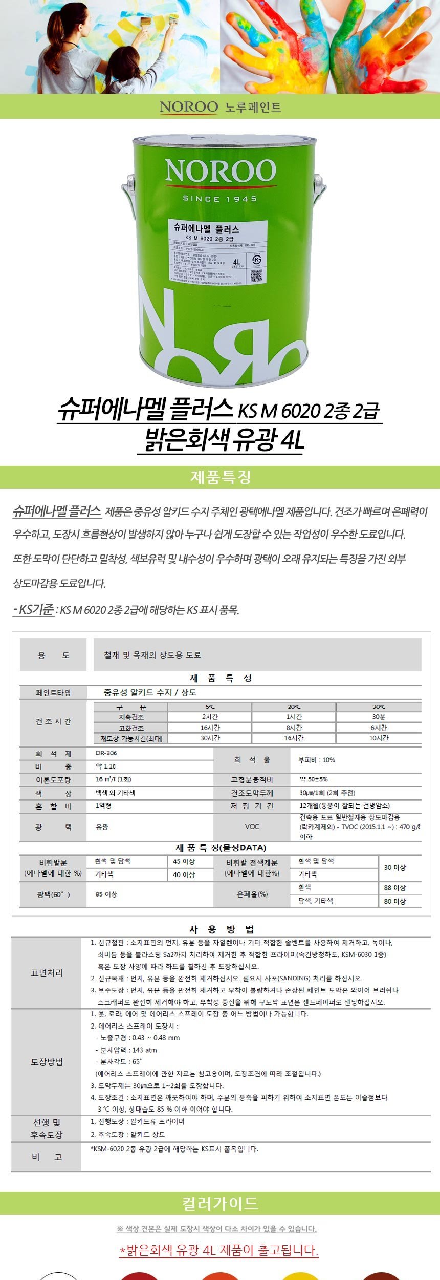 노루 슈퍼에나멜 플러스 밝은회색 유광 4리터