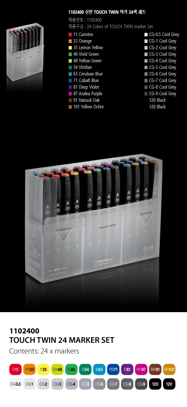 신한 트윈마카 24색 신형 1102400 캘리그라피 그림그리기 꾸미기 이미지/