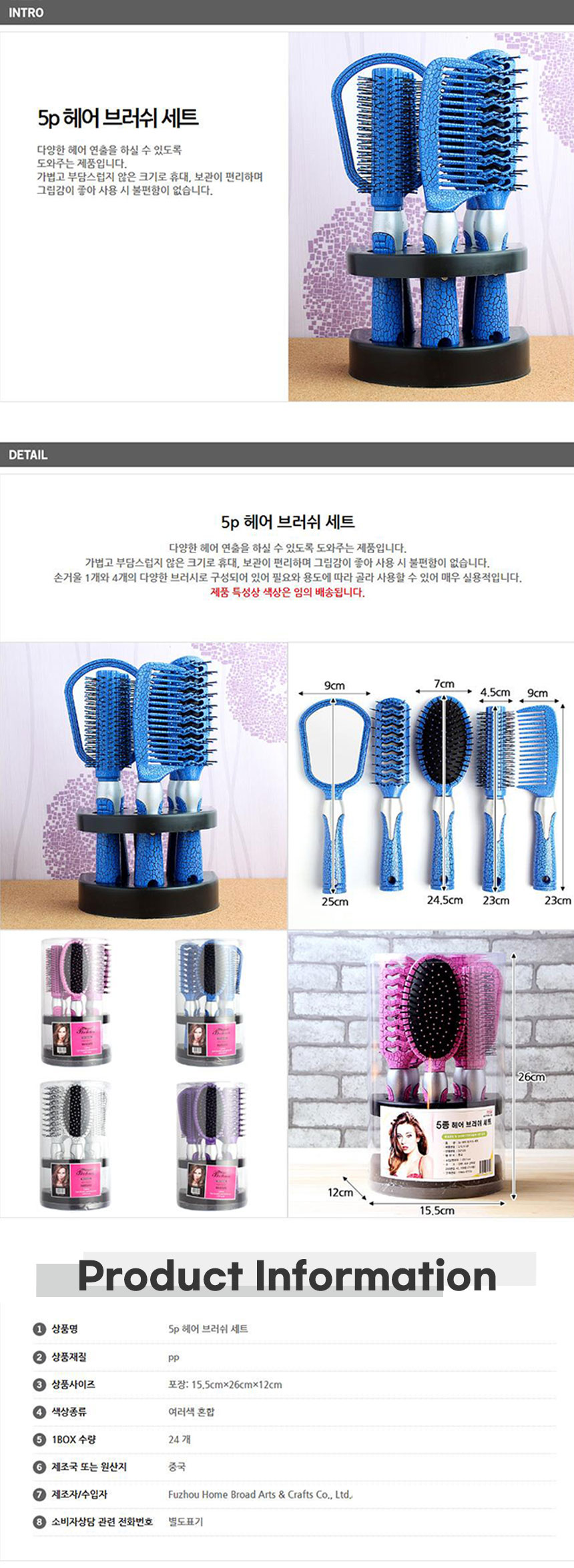 손거울 포함 헤어브러쉬세트 헤어용품 휴대용빗