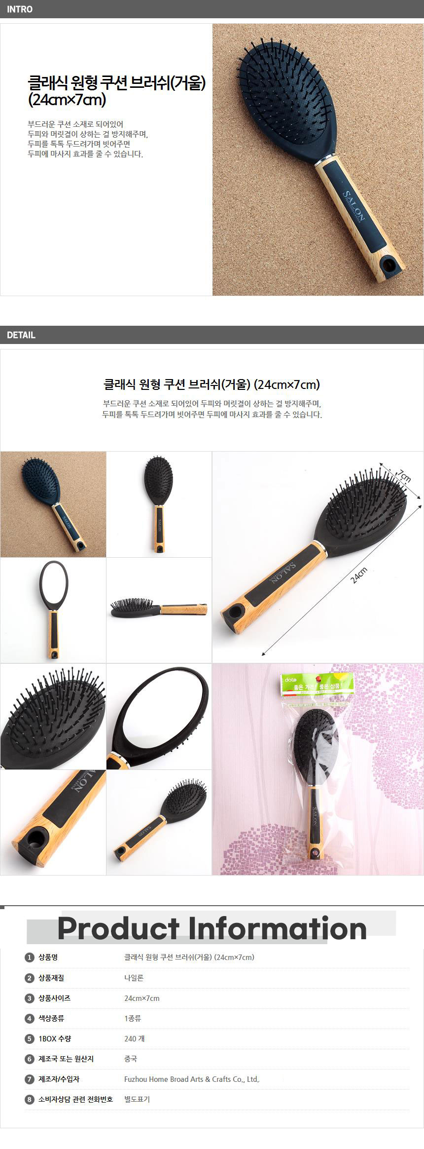 거울달린 동그란핀 클래식 헤어브러쉬x5개 헤어케어 이미지/