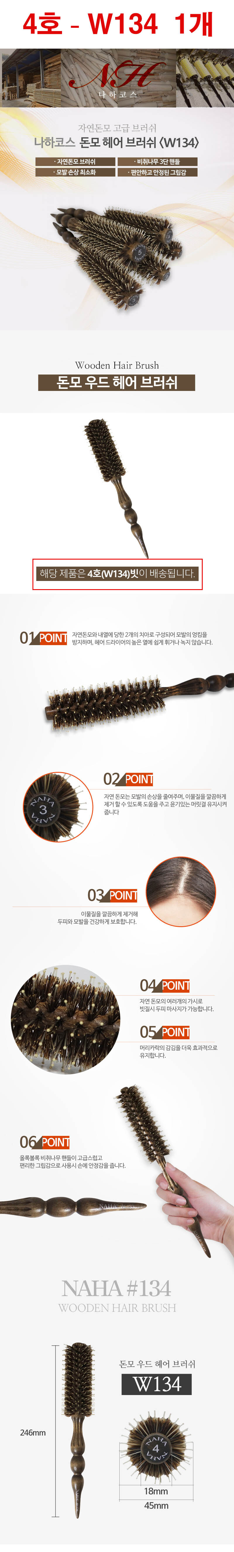 1. 품명 및 모델명 : 나하코스 돈모 무깡 포킹 헤어브러쉬 4호 W134 18mm / 상세정보별도표시