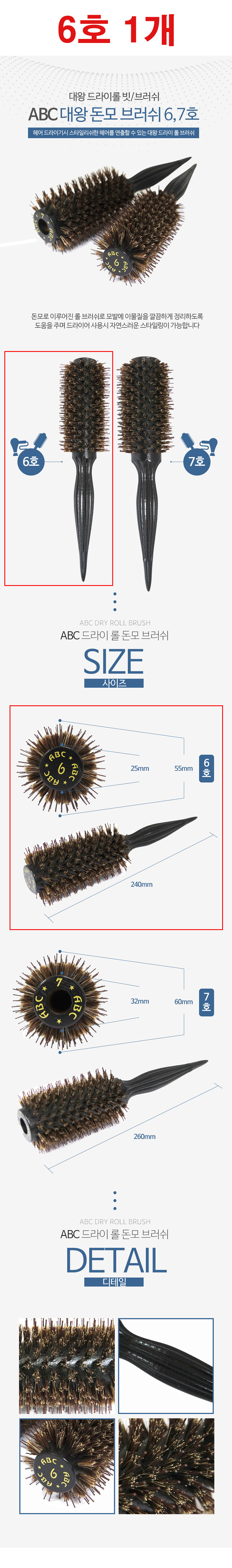 고급 돈모 드라이 롤브러쉬 특대 6호 브러시 머리빗