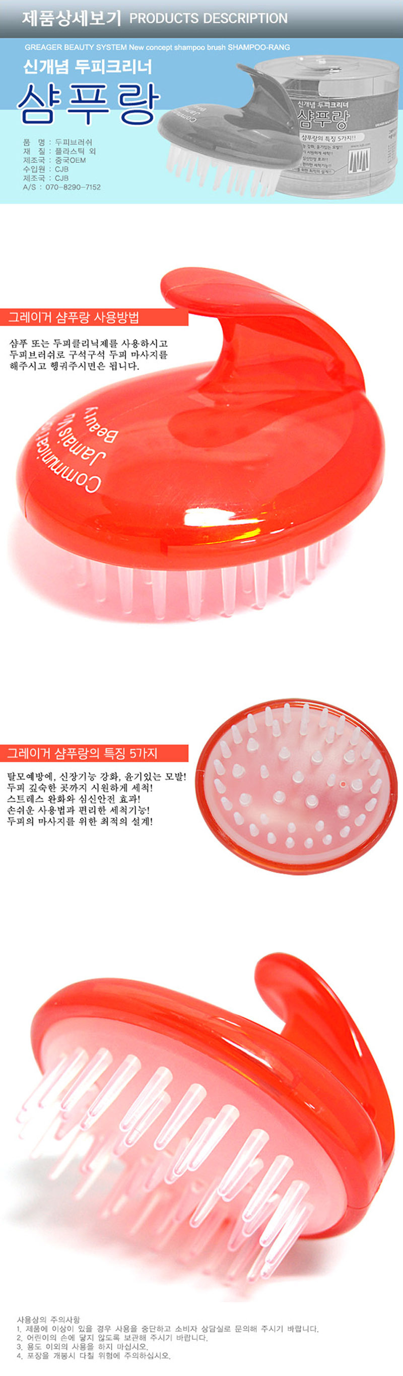 1. 품명 및 모델명 : 그레이거 샴푸랑 샴푸 두피 브러쉬 1p마사지 브러시 / 상세정보별도표시