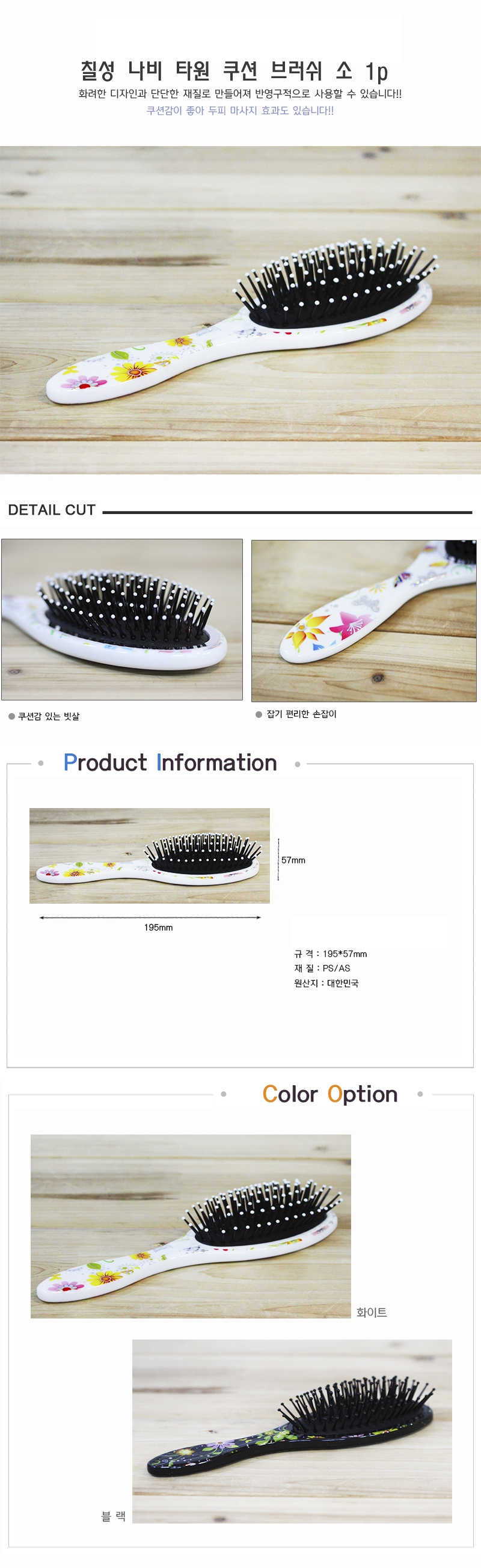 칠성 나비 타원 쿠션 브러쉬 소 1p 웻브러쉬 핫브러쉬 이미지/