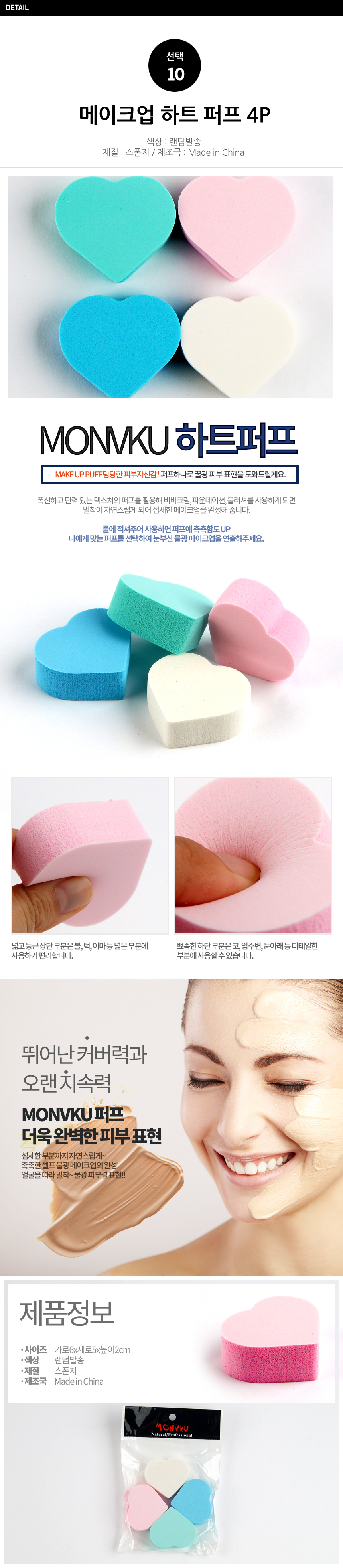 [MJ무역] 창고정리 메이크업 하트 퍼프4P 이미지/