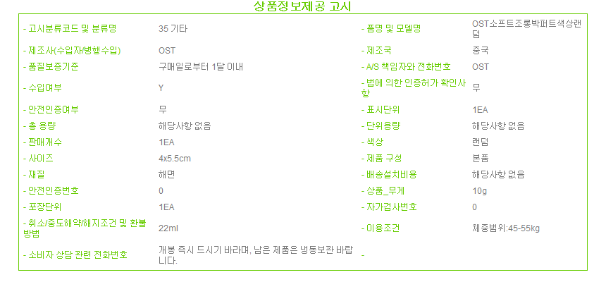 수입자 상품상세설명에 표기