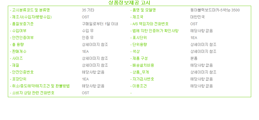 제조자 상품상세설명에 표기