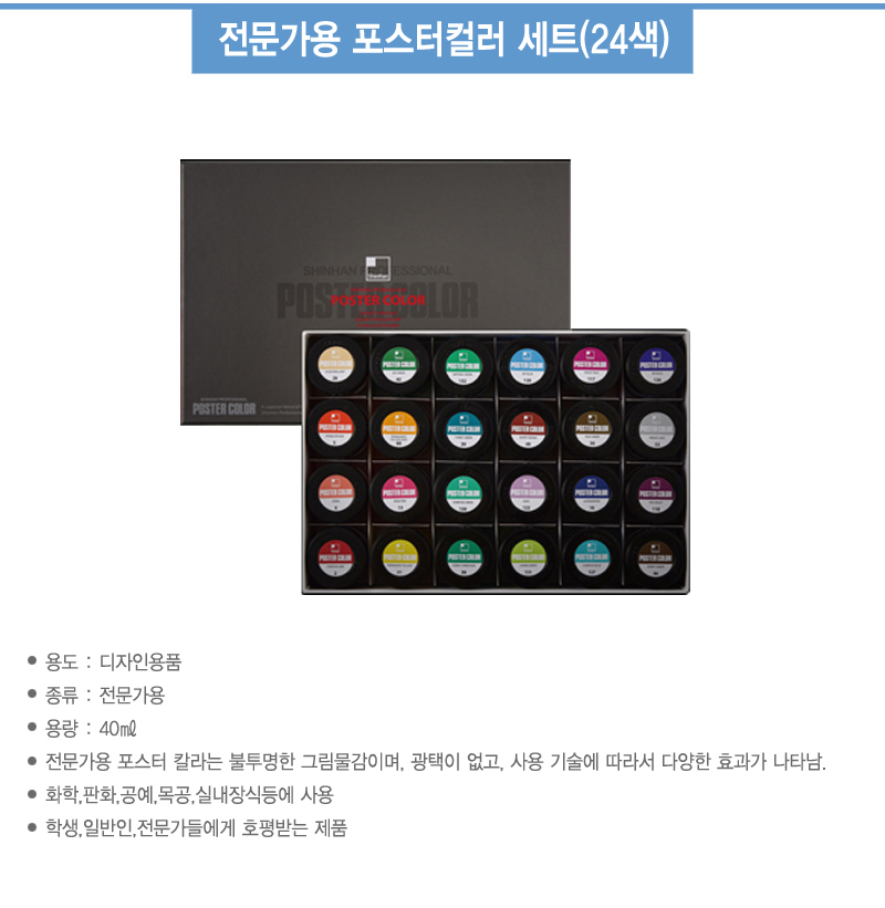 전문가용 포스터컬러 세트(24색B세트/40ml) 이미지/