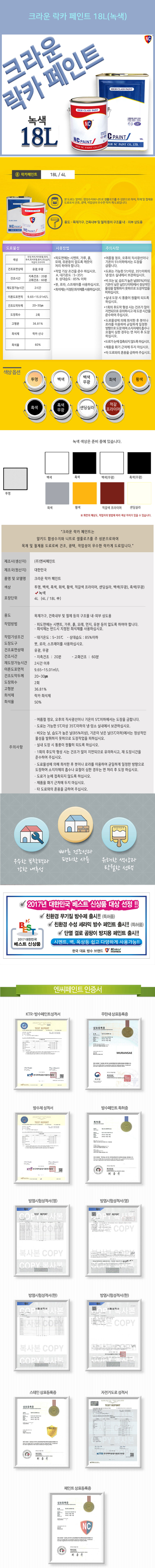 락카 페인트(녹색) 18L 이미지/
