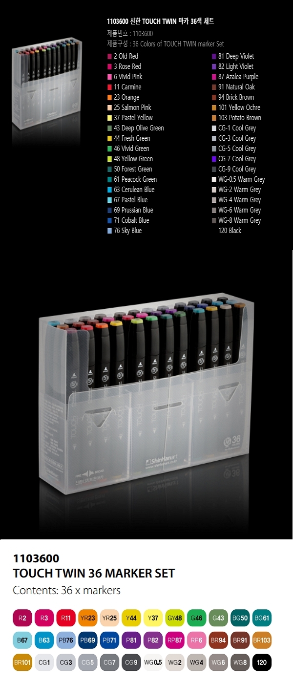 신한 트윈마카 36색 세트 (1103600) 캘리그라피 그림그리기 꾸미기